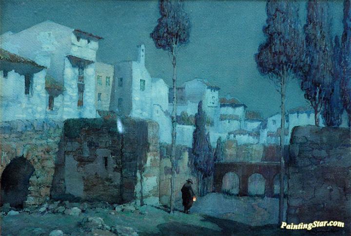 Moonlight. Palma, Majorca, Art Painting by Albert Moulton Foweraker