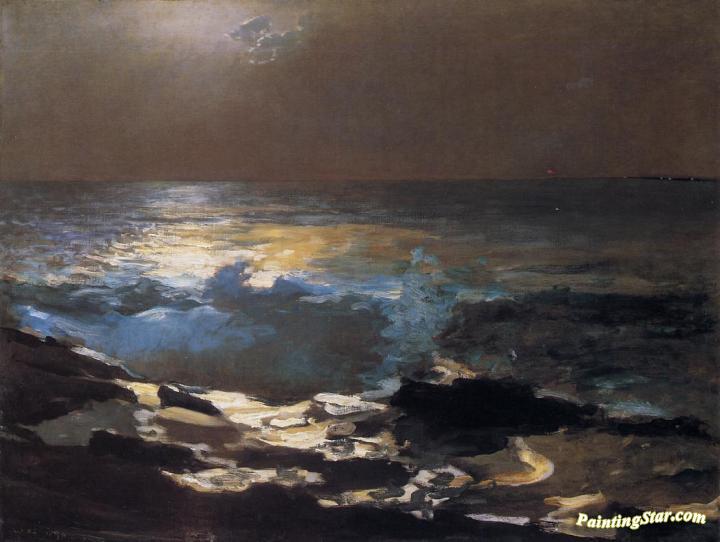 Moonlight, Wood Island Light, Art Painting by Winslow Homer