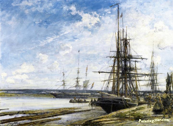 Mooring Bassin on the Meuse, near Rotterdam, Art Painting by Johan Berthold Jongkind