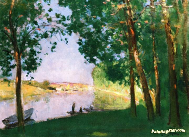 Moret sur Loing, Banks of the River, Art Painting by Pierre Eugène Montézin