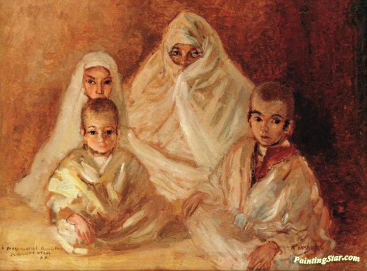Moroccan Woman And Her Children (marocaine Et Ses Enfants), Art Painting by André Hambourg
