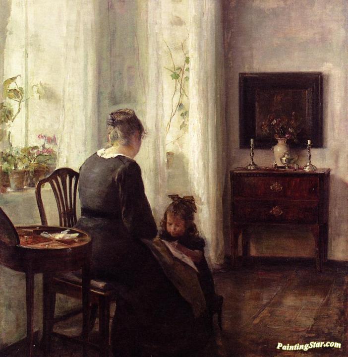 Mother and Child by a window, Art Painting by Carl Vilhelm Holsoe