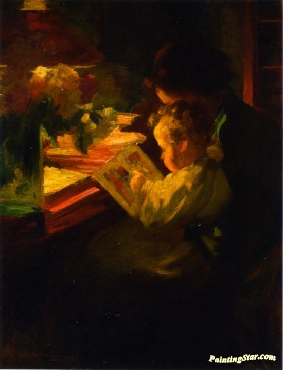 Mother and Daughter Reading, Art Painting by Jean Mannheim