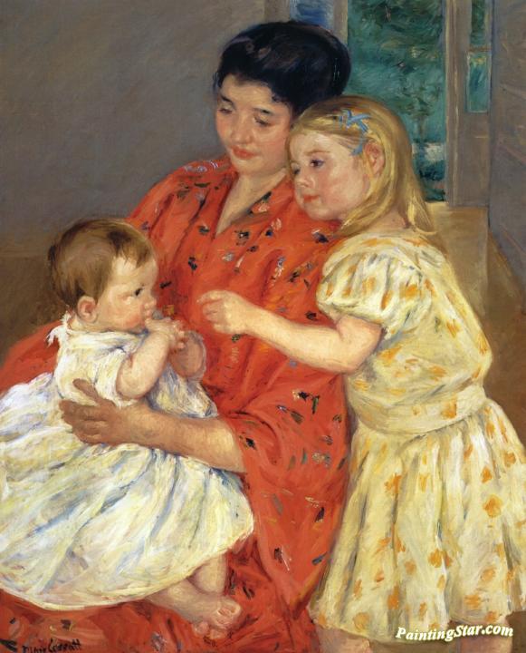 Mother and Sara Admiring the Baby, Art Painting by Mary Cassatt