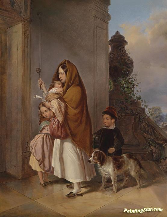 Mother with her children in need, Art Painting by Elisabeth Modell