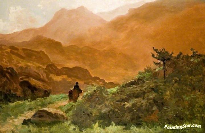 Mountain Landscape with Figures, Art Painting by Thomas Edwin Mostyn