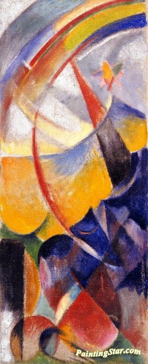 Mountain Landscape with Rainbow (left hand part of three part fire screen), Art Painting by Franz Marc