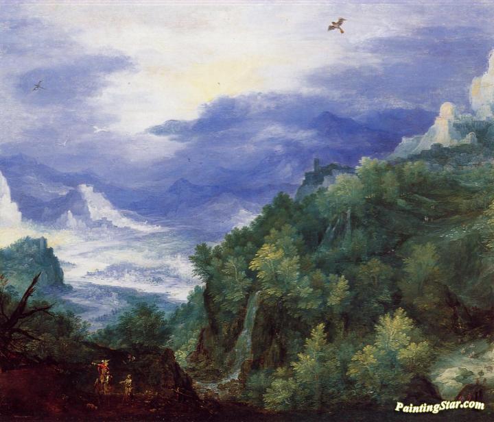Mountain Landscape With View Of A River Valley, Art Painting by Jan Bruegel the Elder