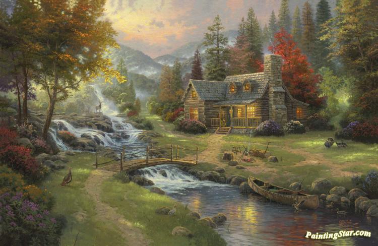 Mountain Paradise, Art Painting by Thomas Kinkade