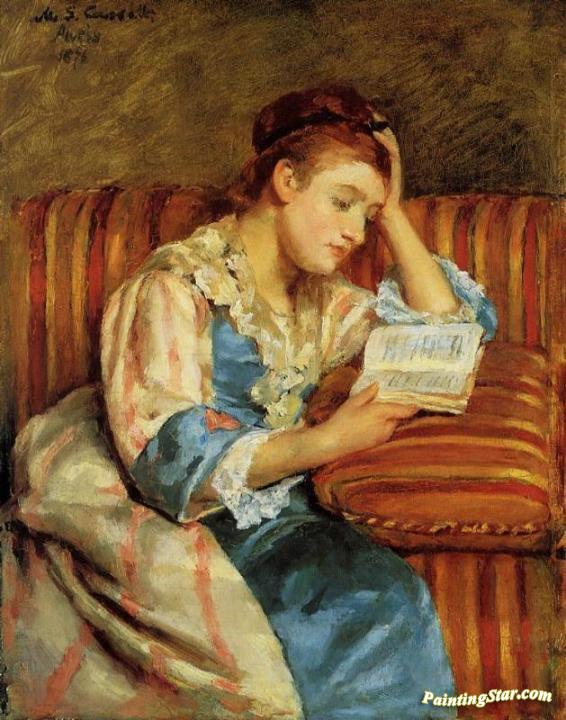 Mrs. Duffee Seated on a Striped Sofa, Reading, Art Painting by Mary Cassatt