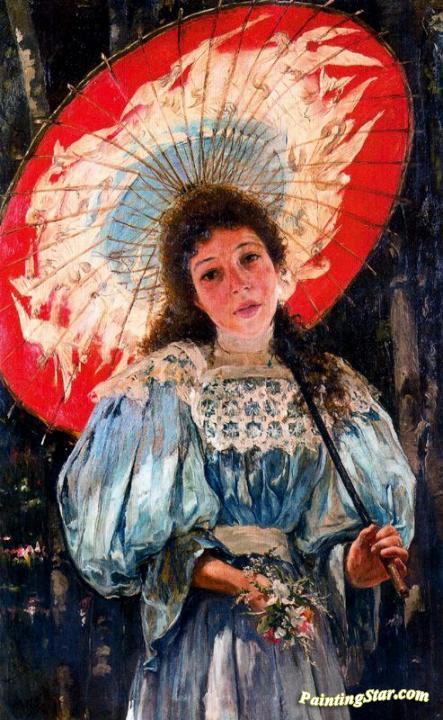 Mujer con sombrilla, Art Painting by Jose Mongrell Torrent