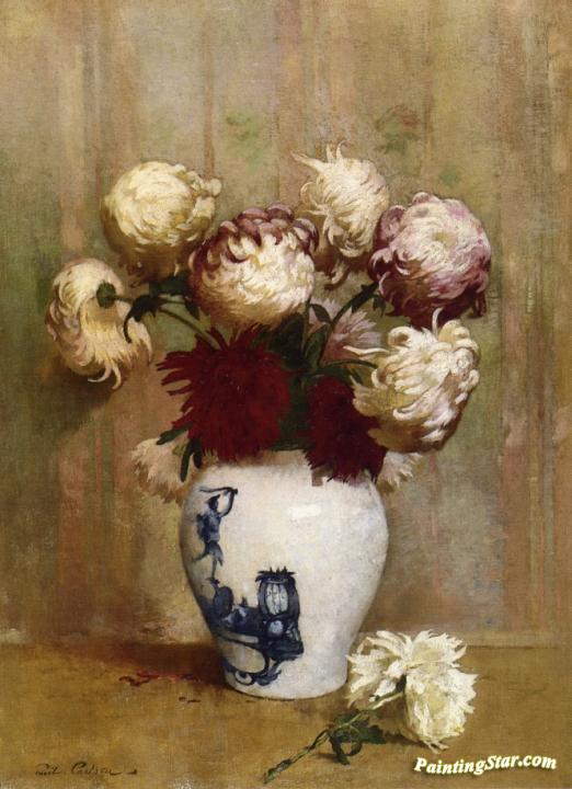 Mums in an Oriental Vase, Art Painting by Emil Carlsen