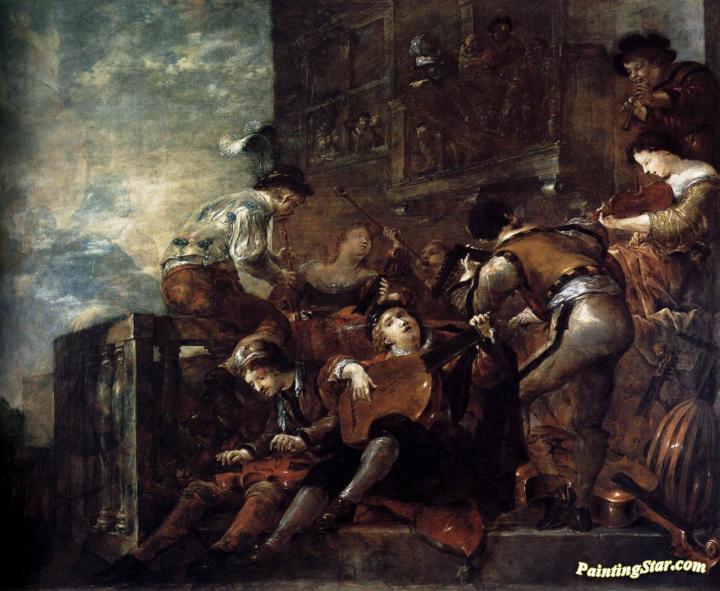 Musicians On A Terrace, Art Painting by Leonaert Bramer