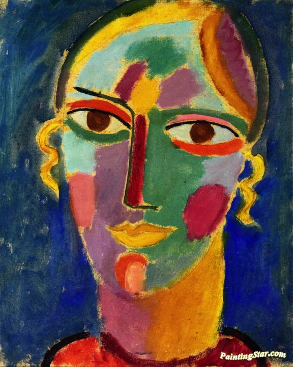 Mystical Head; Female Head on a Blue Background, Art Painting by Alexej Jawlensky