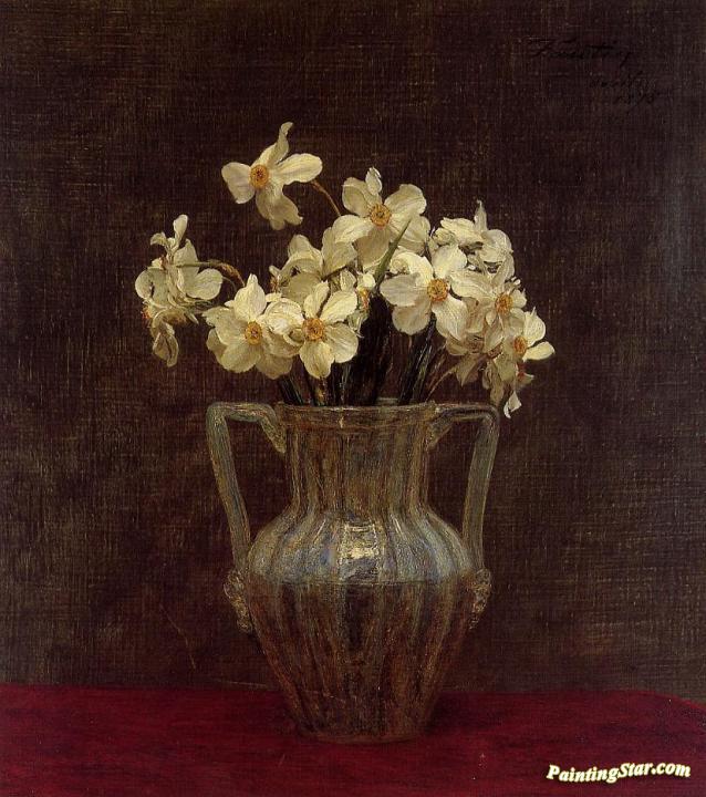 Narcisses in an Opaline Glass Vase, Art Painting by Henri Fantin-Latour