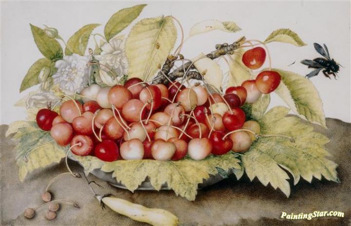 Nature Morte Aux Cerises, Art Painting by Giovanna Garzonni
