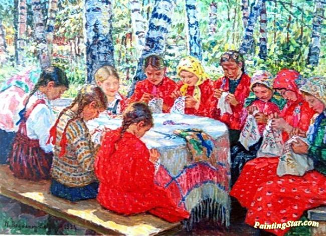 Needlework Classes In A Russian Village, Art Painting by Nikolai Petrovich Bogdanov-belsky