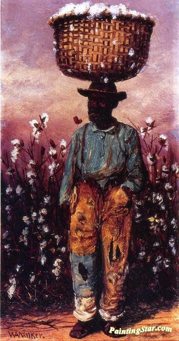 Negro Man With Basket Of Cotton On Head, Art Painting by William Aiken Walker