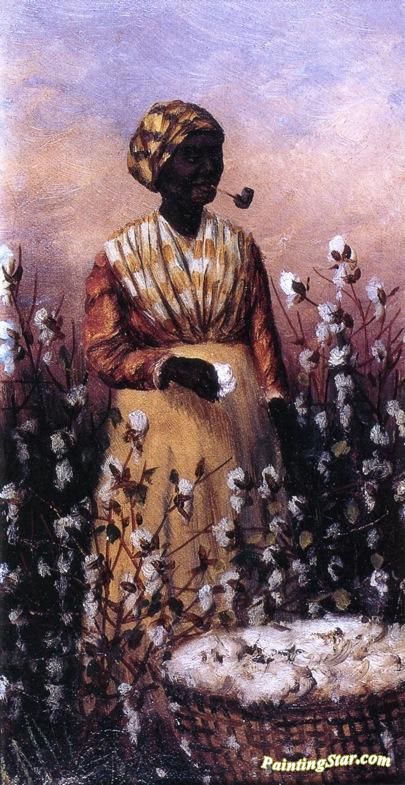 Negro Woman Smoking Pipe And Picking Cotton, Art Painting by William Aiken Walker