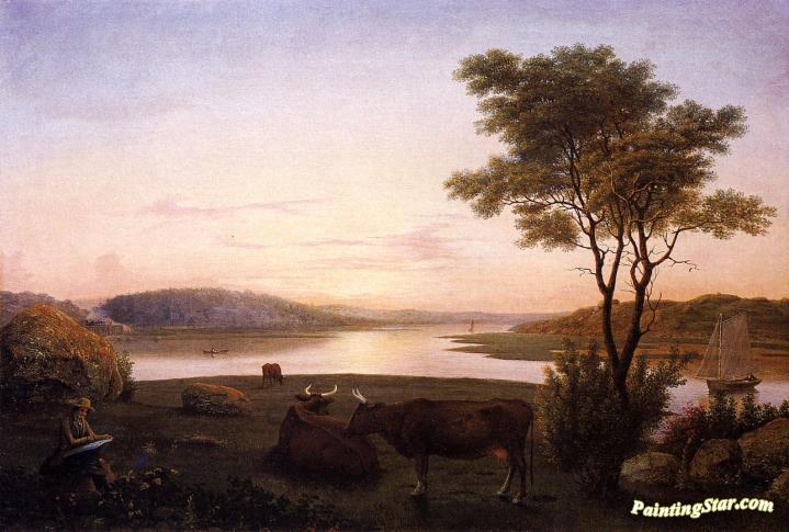 New England Inlet with Self Portrait, Art Painting by Fitz Hugh Lane