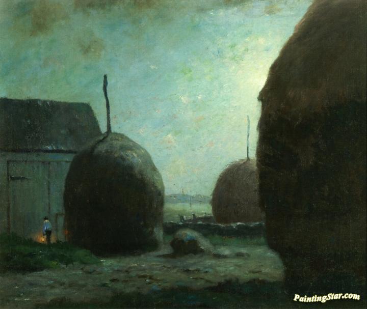 Newbury Haystacks in Moonlight, Art Painting by Dwight W. Tryon