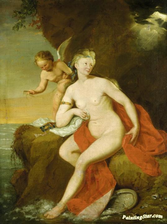 Newly Born Venus Cared for by Cupid, Art Painting by Godfried Schalcken