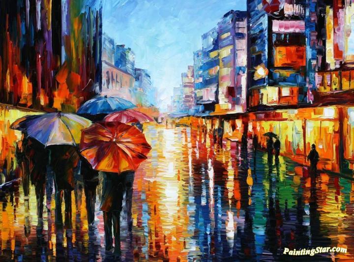 Night umbrellas, Art Painting by Leonid Afremov