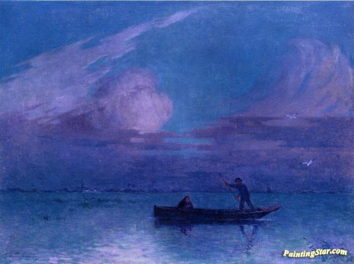 Nighttime Boat Ride at Briere, Art Painting by Ferdinand du Puigaudeau