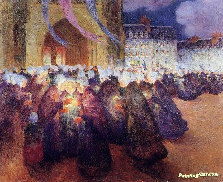 Nighttime Procession At Saint-pol-de-leon, Art Painting by Ferdinand du Puigaudeau