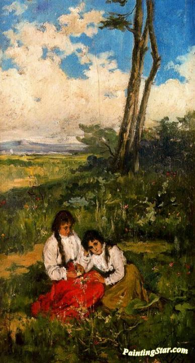 Niñas en el prado, Art Painting by Jose Mongrell Torrent