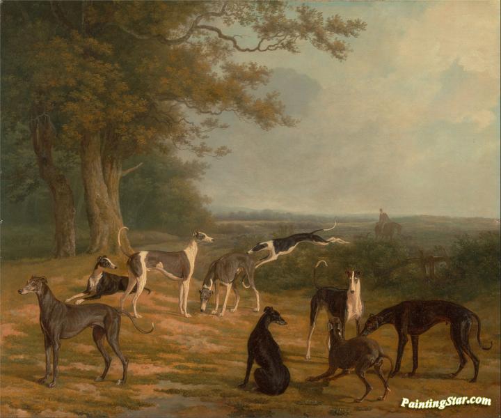Nine Greyhounds In A Landscape, Art Painting by Jacques-Laurent Agasse