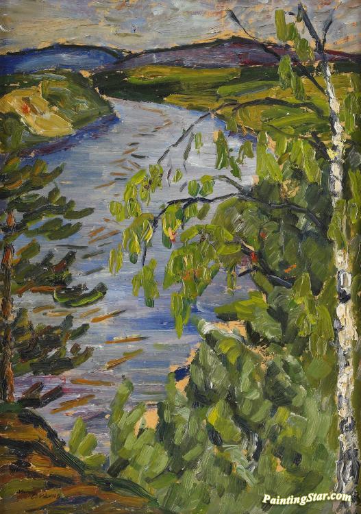 Norrlandskt Landskap Med Fors, Art Painting by Helmer Osslund
