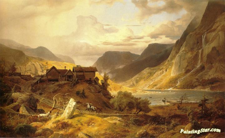 Norwegische Gebirgslandschaft, Art Painting by Andreas Achenbach