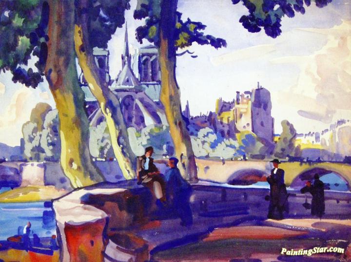 Notre Dame from ile de la Cité, Art Painting by Frank Nelson Wilcox