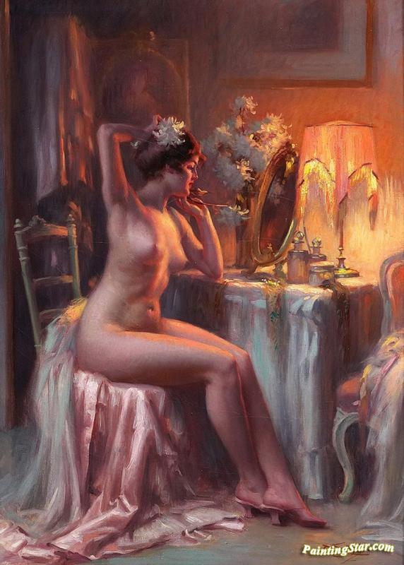 Nu A Sa Coiffeuse, Art Painting by Delphin Enjolras
