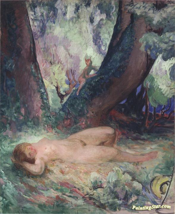 Nude in a garden with a Satyr, Art Painting by Henri Lebasque