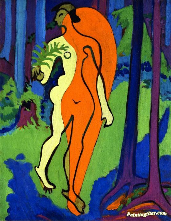 Nude in Orange and Yellow, Art Painting by Ernst Ludwig Kirchner