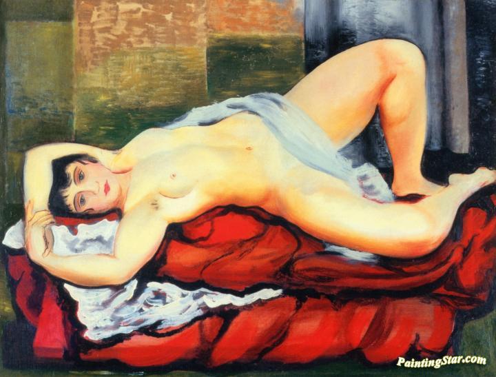 Nude Lying on a White Sheet, Art Painting by Moise Kisling