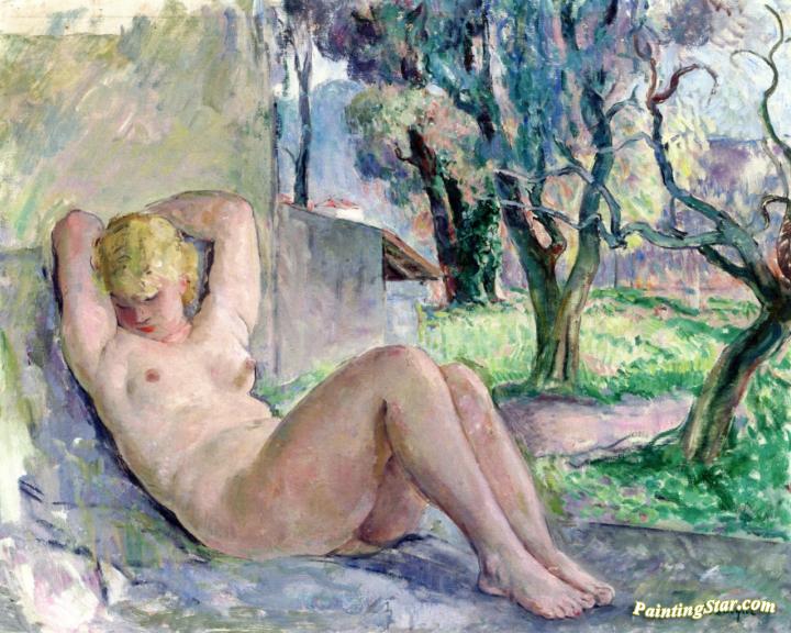 Nude Seated in a Garden, Art Painting by Henri Lebasque