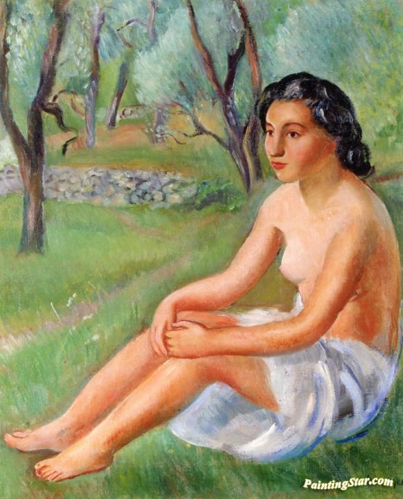 Nude Seated In The Countryside, Art Painting by Joaquin Sunyer y Miro