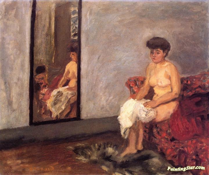 Nude Seated on a Red Sofa, Art Painting by Pierre Bonnard