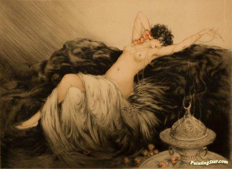 Nude With Black Fur, Art Painting by Louis Icart