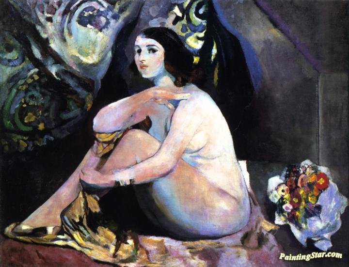 Nude with Bouquet, Art Painting by Arthur B. Carles