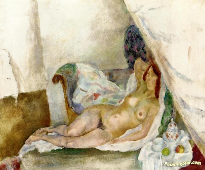 Nude with Drapery, Art Painting by Jules Pascin