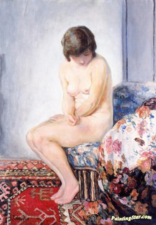 Nude with Red Carpet, Art Painting by Henri Lebasque