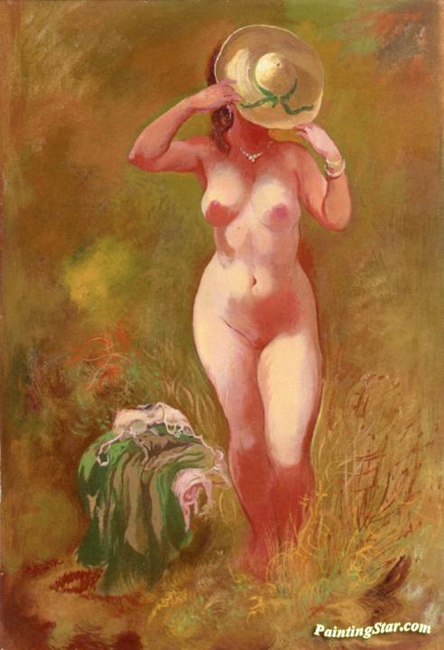 Nude with Straw Hat, Art Painting by George Grosz