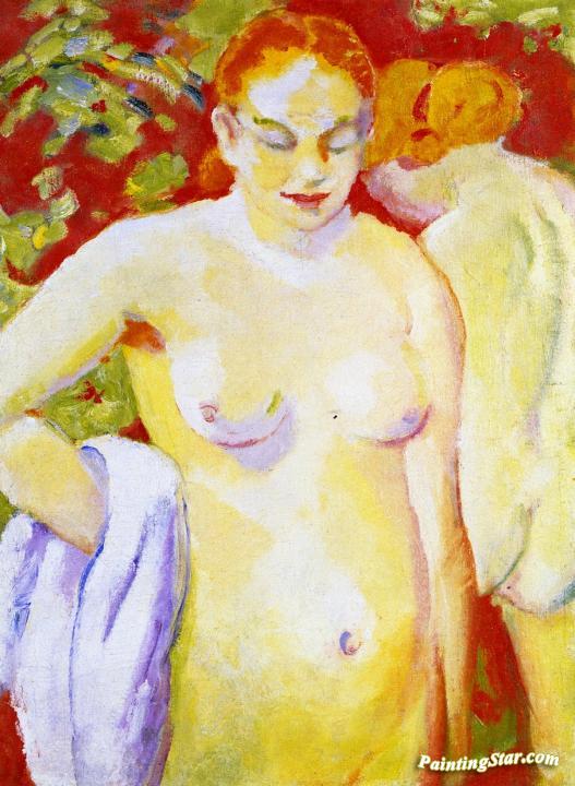 Nudes on Vermilion (sketch), Art Painting by Franz Marc