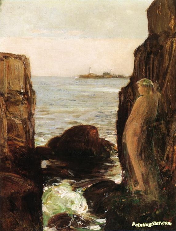 Nymph on a Rocky Ledge, Art Painting by Frederick Childe Hassam