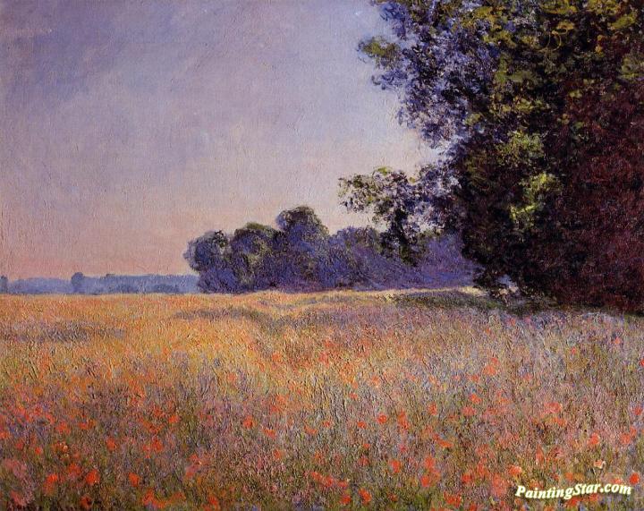 Oat And Poppy Field, Giverny, Art Painting by Claude Oscar Monet