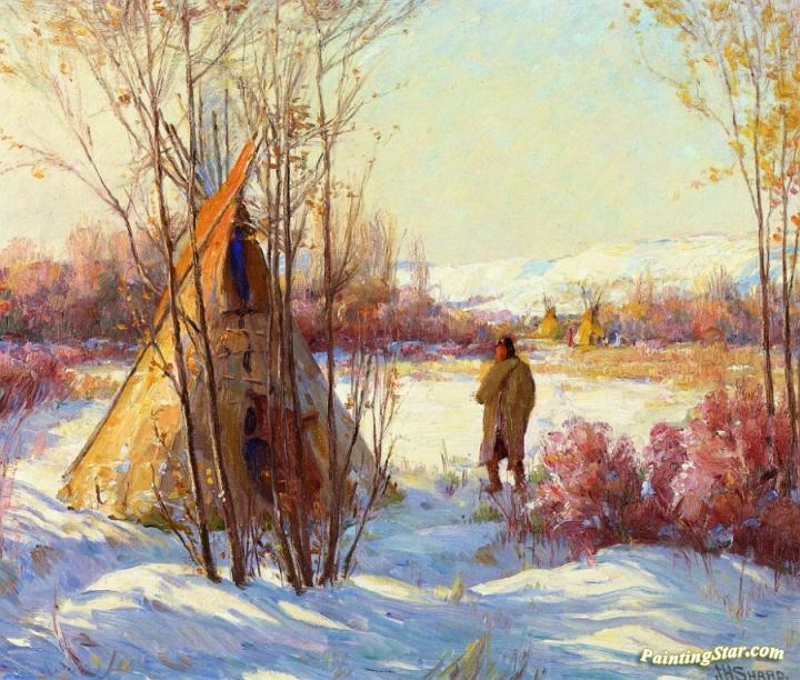 October Morning - Crow Teepees in Montana, Art Painting by Joseph Henry Sharp